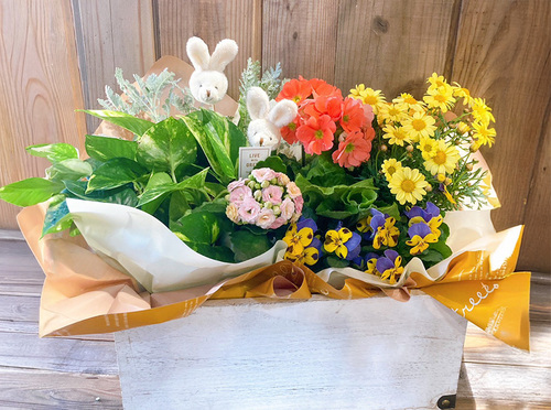 季節の花材を中心に、贈る目的やご予算に合わせてご提案いたします。写真はイメージです。 お好みのテイストや色味があればご注文時にお伝えください。